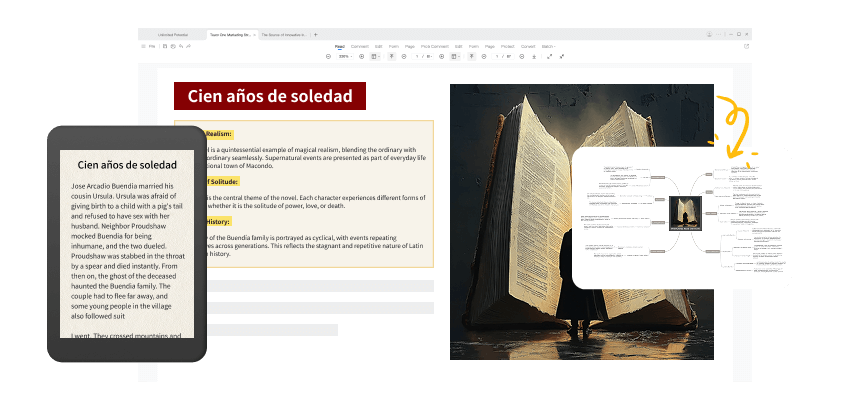 Captura temas, tramas y evolución de personajes con el resumidor de novelas con IA. Entiende historias y capítulos más rápido.