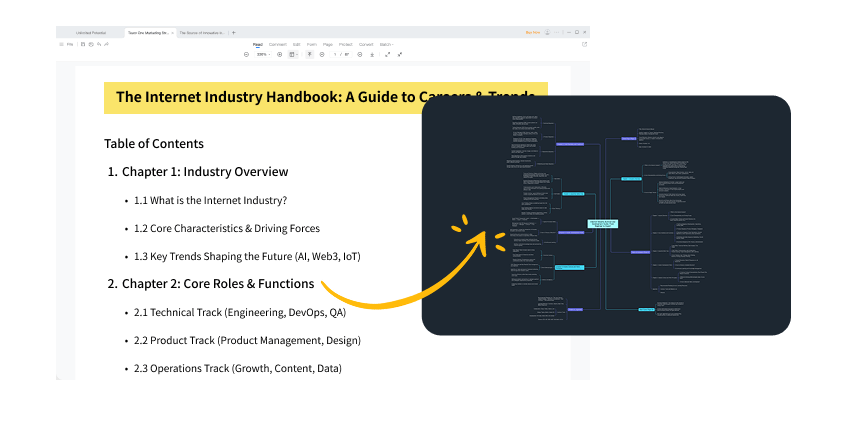 Resume manuales técnicos y guías de industria de forma eficiente. Convierte largos PDFs en mapas mentales concisos.
