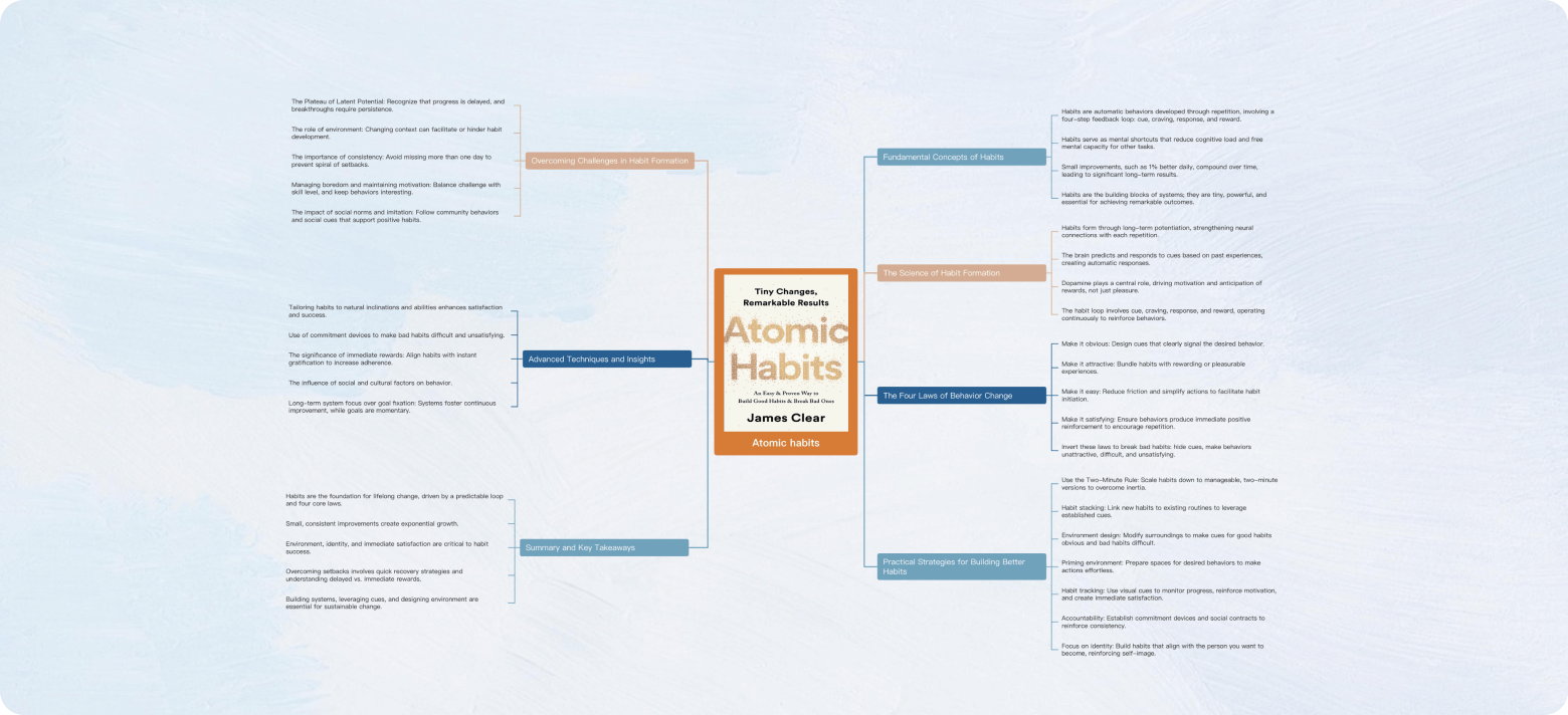 Resume fácilmente Atomic Habits capturando principios centrales, estrategias para formar hábitos y pasos prácticos para el crecimiento personal.